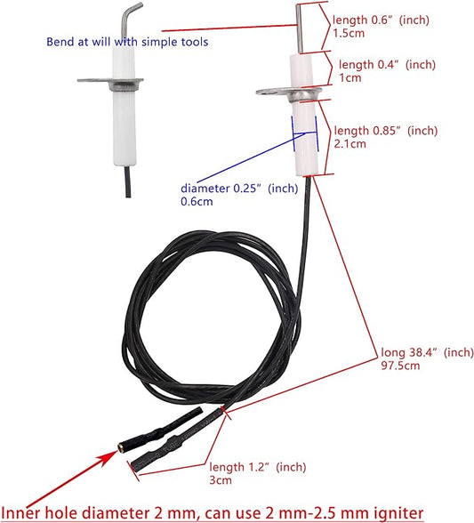 (Round Pin)2Pc 38" Ignitor Wire & Ceramic Electrode Assembly Replacement,Ignition Electrode Can DIY Bending for Gas Burner Ceramic Spark Plug Ignition Electrode Replacement