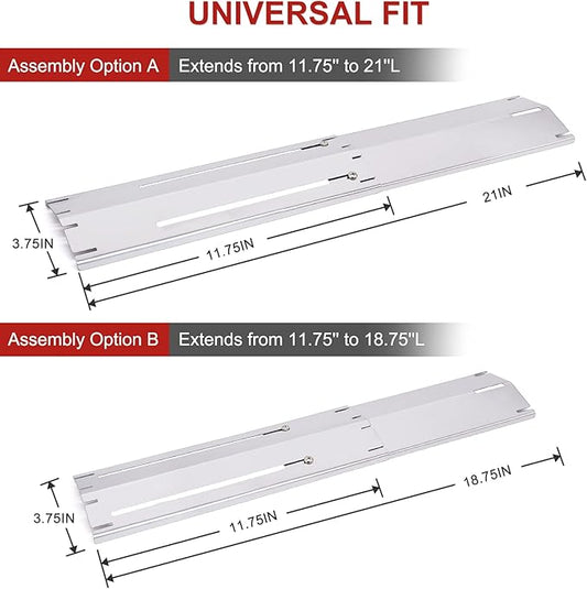 Universal Grill Heat Plates Tents Shields for Gas Grill, Adjustable from 11.75” to 21” Barbecue BBQ Grill Flame Tamers Burner Covers Heat Deflectors, Stainless Steel 4-Pack