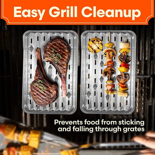 [25-Pack] Grill Liner Pans - Disposable Aluminum Foil Perforated Grill Grates Lining Trays for Outdoor Grills - Broiler Pans with Holes for Grilling, Topper Pans, Accessories for BBQ Charcoal Grills