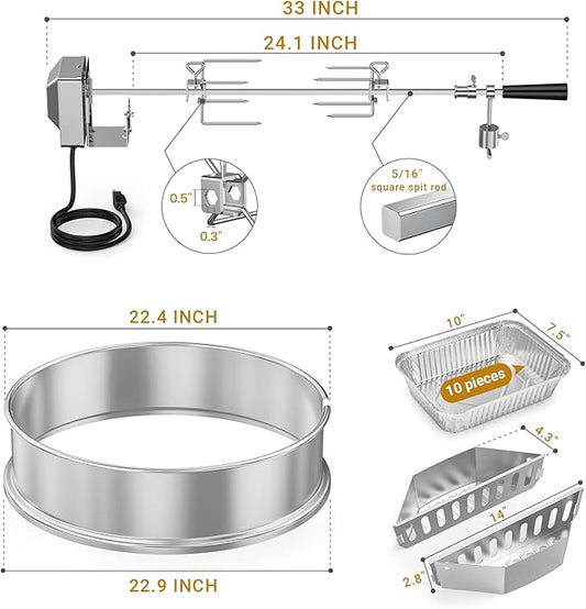 Upgrade Stainless Steel Rotisserie Ring Kit for Weber 22-inch Kettle Charcoal Grills, Comes with Charcoal Baskets and 10 Pack Drip Pans