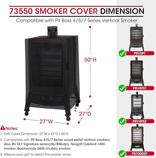 Vertical Smoker Cover Compatible with Pit Boss 4, 5, 7 Series, Wood Pellet Smoker Cover for Outside, Waterproof Outdoor BBQ Grill Cover, Compared to Pit Boss 73550