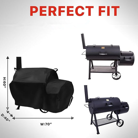 70 inch Grill Cover for Oklahoma Joe's Longhorn Offset Smoker, Waterproof & Heavy Duty Black Smoker Cover