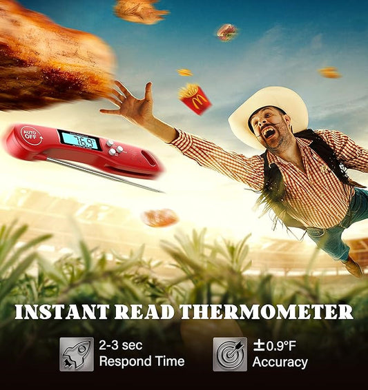 Digital Meat Thermometer, Instant Read Food Thermometer for Cooking, Kitchen Probe with Backlit & Reversible Display, Cooking Temperature Probe for Turkey, Grill, BBQ, Baking, Bread, Sourdough