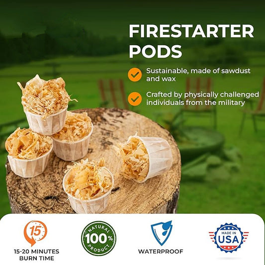 Fire Starter Pods in Resealable Packs - Fire Starters for Campfires, BBQ, Grill, Pit, Wood Stove & Charcoal Starter, 15-20-Min Burn, 30 Extra Large Pods, USA Made, Brown, 3.2 Lbs