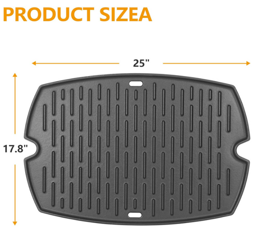 17.5" Grill Griddle 7658 for Weber Spirit I II 200 300 Series, Spirit E/S-210 220, E/S-310 320 330, Cast Iron Grill Plate for Weber 7597 7598