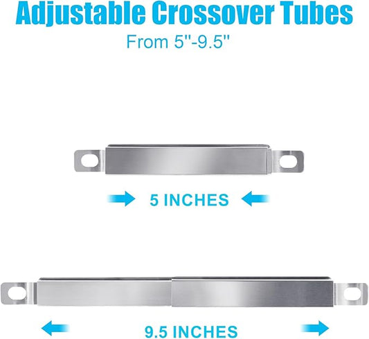 Adjustable Universal Crossover Tubes 5" up to 9.5" for Nexgrill 720-0830H Charbroil 463344116, 463241113, 463449914,Thermos 461442114,Grill Tube Replacement Parts,Stainless Steel,4 Pack