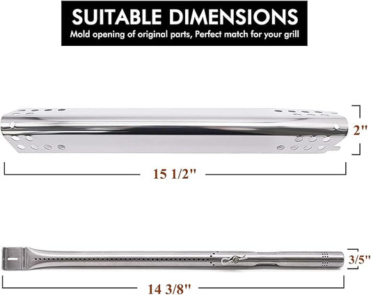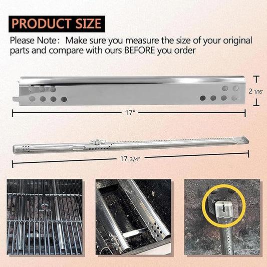 Replacement for Members Mark BQ05046-6, BBQ Pro BQ05041-28, BQ51009, Sam's Club, Outdoor Gourmet BQ05037-2, BQ05046-6A Gas Grills, Burner Tube, Stainless Steel Heat Plate, 3pk