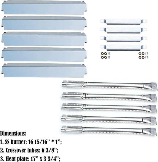 Parts Kit Replacement for Charbroil Commercial 463268806 Gas Grill Burner,Carryover Tubes,Heat Plates (SS Burner + SS carry-over tubes +SS Heat Plate)