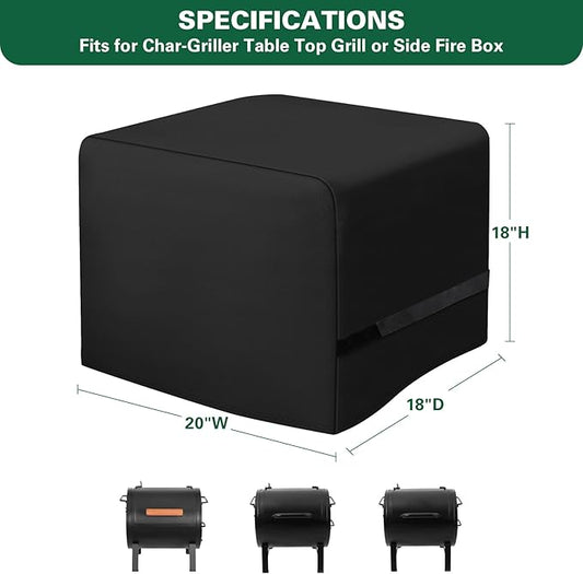 Side Fire Box Grill Cover Fits for Char-Griller 22424 72424 E82424 Portable Tabletop Grill, 600D Heavy Duty BBQ Cover Waterproof Portable Grill Cover, 18 x 18 x 20 Inch