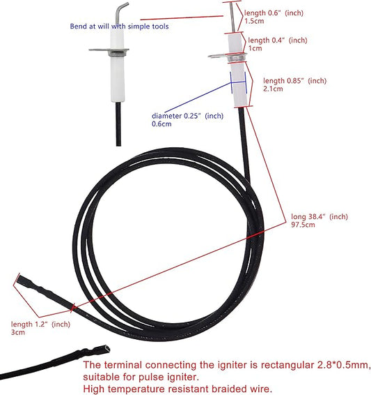 (Rectangular Pin)2Pc 38" Pulse Ignitor Wire & Ceramic Electrode Assembly Replacement,Ignition Electrode Can DIY Bending for Pulse Ignitor Spark Plug Ignition Electrode Replacement