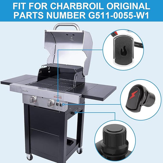 Grill Igniters for Charbroil Ignitor Replacement Kit, 4-Outlets Electronic Ignition Module with Wires G511-0055-W1 and 2 Push Buttons Igniter for Charbroil Surefire Ignition Systems