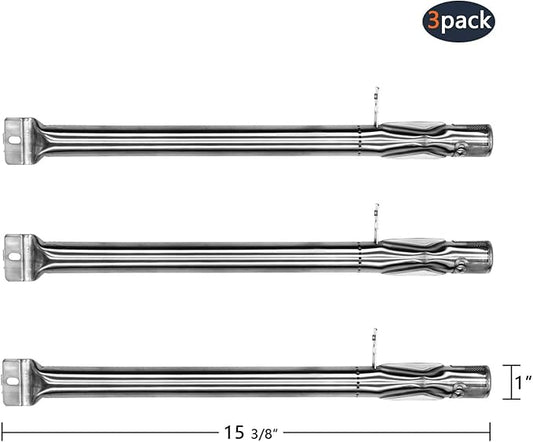15 3/8" BBQ Gas Grill Replacement Stainless Steel Pipe Tube Burner for BBQ Pro, Kenmore Sears, K Mart Part, Members Mark Part, Outdoor Gourmet, Lowes Model Grills (3-Pack)