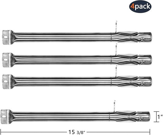 15 3/8" BBQ Gas Grill Replacement Stainless Steel Pipe Tube Burner for Kenmore Sears, K Mart Part, Members Mark Part, Outdoor Gourmet, Lowes Model Grills, 4-Pack
