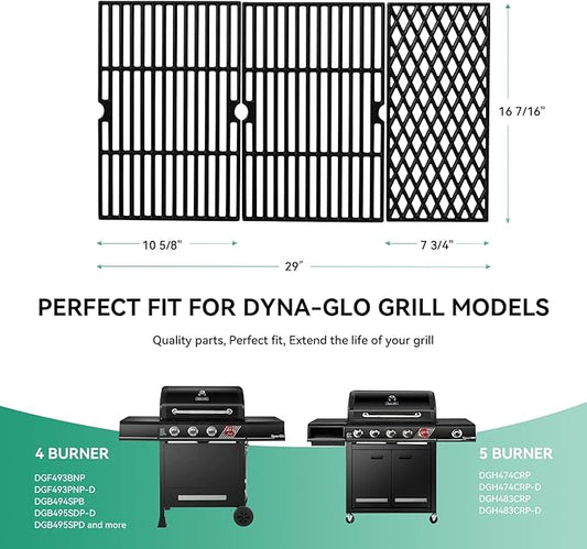 29" DGH474CRP Cooking Grates for Dyna glo DGH474CRP DGH483CRP DGF493BNP DGF493PNP-D DGB495SDP DGB495SDP-D DGB493SPB Grill, 70-02-656 70-01-911 Cast Iron Grill Replacement Part for Backyard BY13-101-001-12