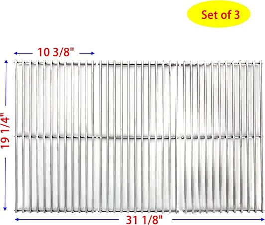 19 1/4" Solid Rod Stainless Steel Grill Grates Replacement for Brinkmann, Charmglow and Jenn Air 720-0337,720-0512, Members Mark 720-0582 , 720-0586 ,Kirkland 720-0193 720-0432, Set of 3