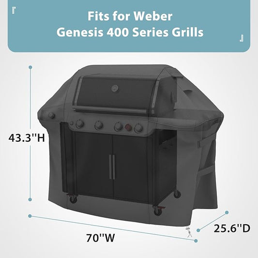 7758 Grill Cover for New 2022 Weber Genesis 400 Series, Double Straps and Built-in Vents,Heavy Duty & Waterproof, Fits Grill Up to 69 Inch Wide, Black